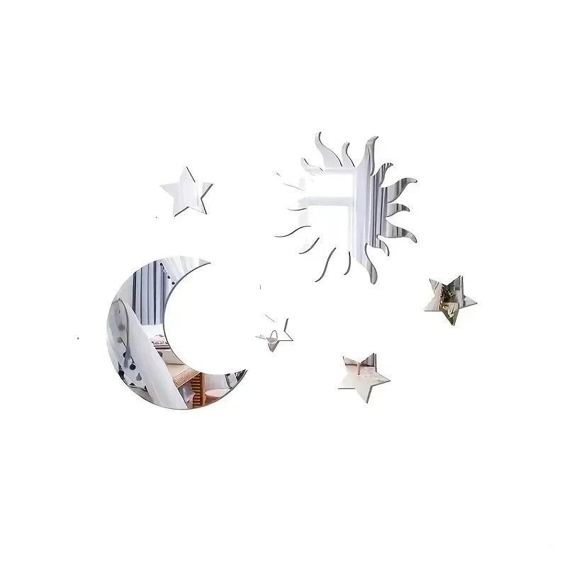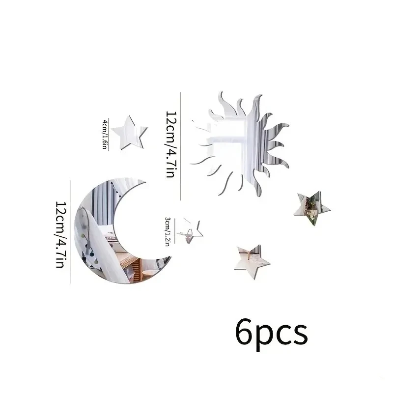 Illuminate your space with this 6pcs Star & Moon Mirror Wall Sticker Set. Designed to bring a celestial touch to bedrooms, living rooms, or festive spaces. The combination of moon and star shapes adds elegance and charm. Made from high-quality reflective acrylic for a mirror-like effect. Perfect for Ramadan Kareem celebrations, birthdays, or holiday decorations. Lightweight and easy to apply—just peel and stick on smooth surfaces. Can be arranged in creative patterns to suit any style. Enhances the room’s brightness by reflecting light beautifully. Ideal for home, party, or event décor. A stunning and versatile decoration set that adds sparkle and serenity to any wall.